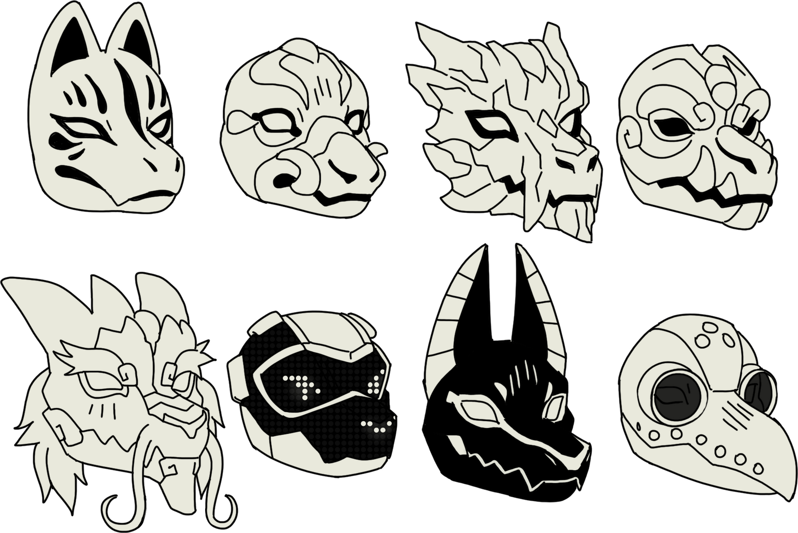 Máscaras (Clase Silvestre)Las máscaras representan la personalidad de un croconaut. Pueden ser de cualquier material, madera, planta, piedra, metal, cuero, hueso, mecánica incluso elementos mágicos como fuego.